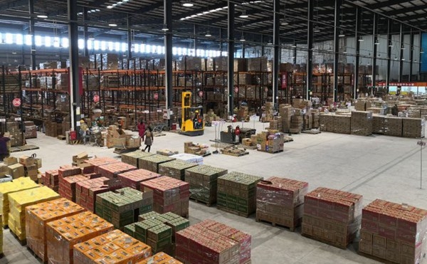 四川在线消息(黄艳 何仁文 记者 程文雯)工人们有的架着前移式叉车在不同的货架间来回穿梭,有的开着搬运车把一件件货品装上车,一辆辆装满了各种生活用品的运输车有序发出。