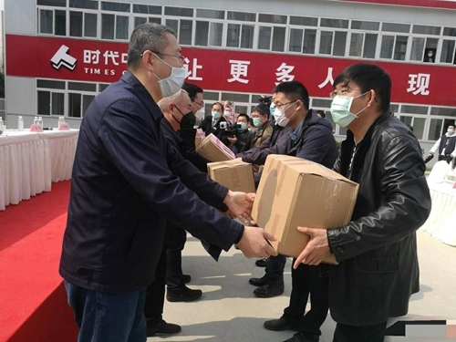 四川在线消息(记者 张红霞)3月7日下午,简短的发言后,由金牛区住建和交通局主办、金牛区建筑业协会承办的住建领域企业防疫物资捐赠仪式在时代天境项目部正式举行——