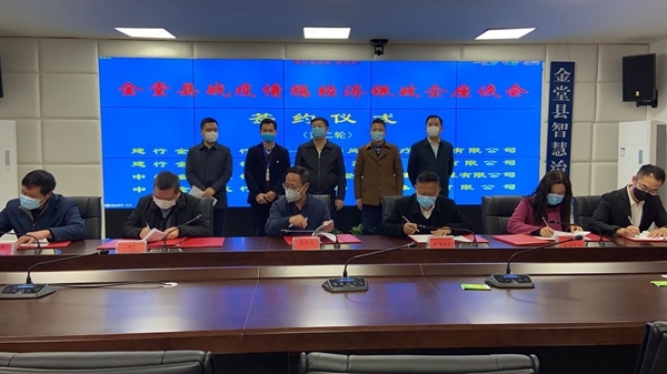 四川宏洲新型材料股份有限公司、成都登峰建筑安装工程有限公司等10户企业与成都银行金堂支行、农商行金堂支行等5家金融机构现场签订了授信协议,授信总金额达3900万元。