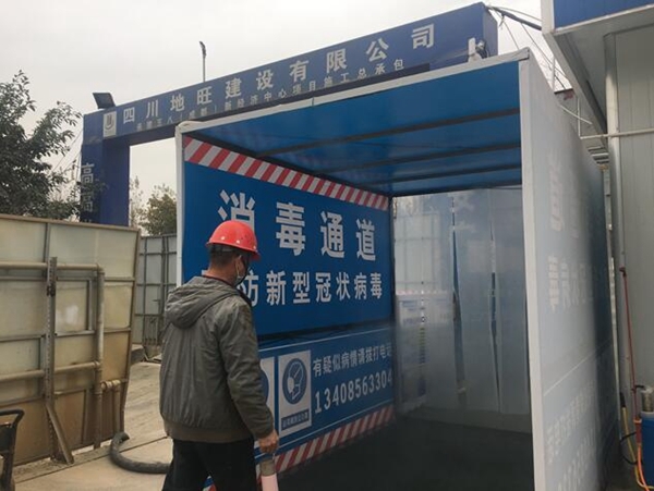 到达工地后,工人需出具《四川外出务工人员健康申报证明》或天府健康通二维码,并填写《建设项目员工健康情况申报卡》《“三级”安全教育记录卡》《个人身体健康承诺书》《新型冠状病毒疫情防控承诺书》等相关资料。项目方查询工人行动轨迹,确认工人的旅居史及身体健康状况后,再将工人信息录入系统,实行实名制管理,工人每日扫脸进出工地,防止未经审核的外来人员出入。笔者在现场看到,工人在进入工地前均需对个人信息进行登记、测量体温,再经过消毒通道对全身进行消毒。傅博说:“工人的身体健康事关企业的信用评分,为避免工人打拥堂,我们要求各班组分时错峰到岗、用餐,防止人员聚集,每天总共为工人测量4次体温,要求工人在施工过程中做好防护。”
