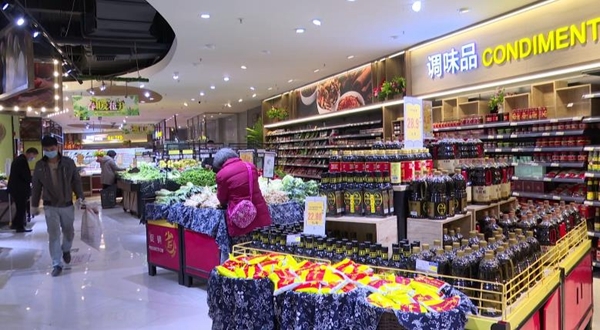 同一时间,在邛崃联华超市鼎盛时代广场店,顾客经过测量体温和消毒后,也有序进入到商场内选购商品。商场负责人表示,为保障民生商品供应,超市从春节开始一直持续运营至今。目前,超市的经营秩序正逐渐恢复正常。