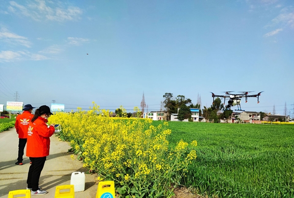 旌阳区各镇(街道)、村还充分利用广播、微信等媒介,开展小麦、油菜主要病虫害防治知识宣传,一个电话、一条语音,就能让“飞防特种作战队”飞入田间地头开展上门服务作业。