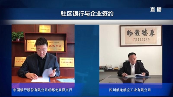 直播活动中,中国银行、工商银行、农业银行、建设银行、农商银行等5家银行与四川航龙航空、一汽(四川)专汽、成都润兴消毒药业等15家企业进行“云签约”,授信金额达5.2亿元。