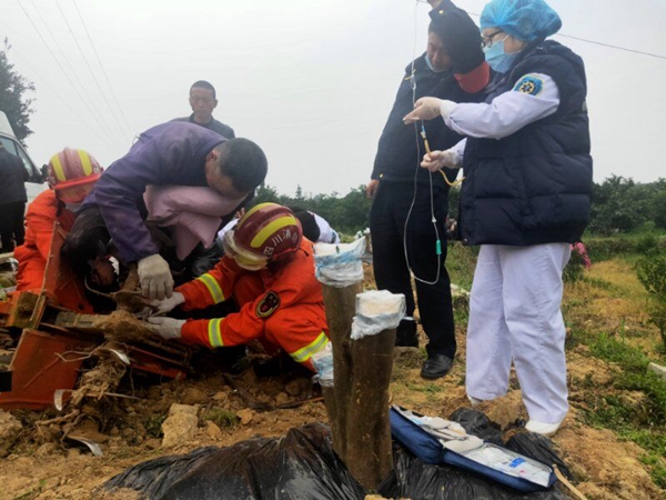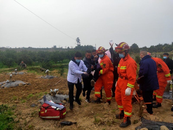 五分钟后,该农户被卡右脚的小腿被成功取出,经现场医护人员初步判断,该农户右脚小腿部分已骨折。