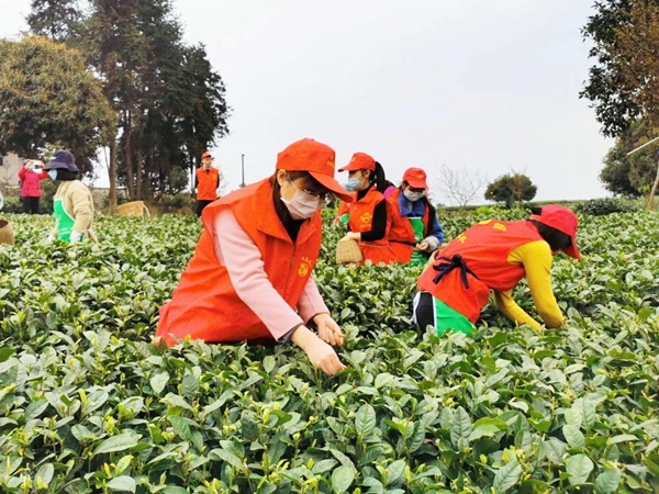 明前茶,贵如金。采茶用工季节性强,如果不及时采摘,叶片会越长越大,影响品质和销售。在红星镇罗湾村,当地茶农则积极发动在家赋闲的返乡农民工,临时从事采茶工作,一方面解决了采茶工紧缺的难题,另一方面增加了村民的收入。