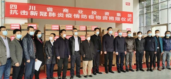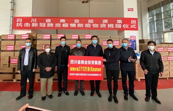 3月13日,四川省商业投资集团向成都部分医疗卫生机构捐赠防疫物资仪式在成都举行。