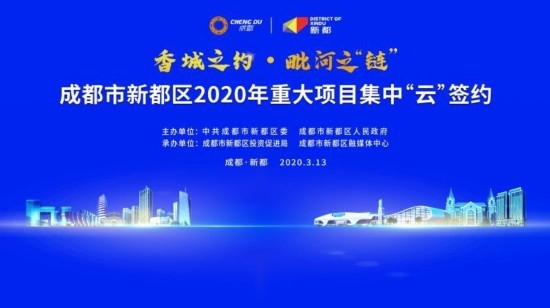 3月13日上午,新都区以“屏对屏”方式举办了2020年成都市新都区重大项目“云签约”活动。云签约”活动网络直播得到了约19.6万的网友关注。