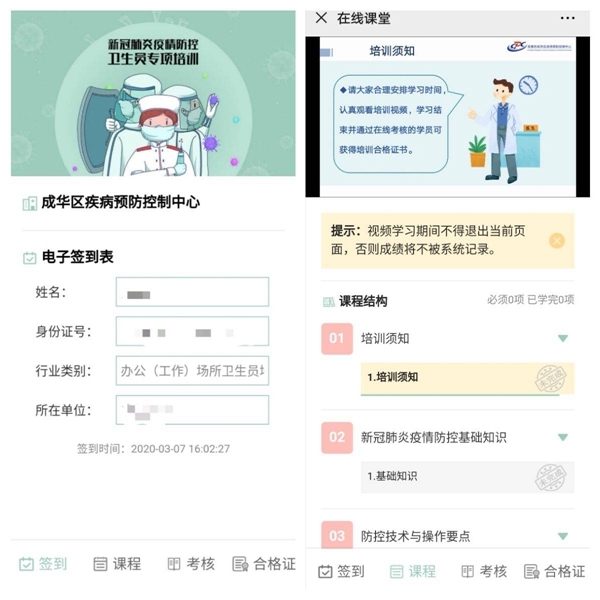 为了让企业卫生员更高效地掌握防控知识,成华区疾控中心开展的疫情防控卫生员免费培训,主要面授的课程大多为视频课件,不论是企业员工、教师,还是餐饮行业、车站等工作人员,通过电脑、手机等媒介就可通过扫码、签到、视频学习等流程,全程参与到“线上”培训学习中,从而实现从培训、在线考核到电子结业证书颁发的全流程无缝衔接。同时,以送教上门、现场教学等多种“线下”培训方式补充,落实落细基层疫情防控“最后一公里”工作。