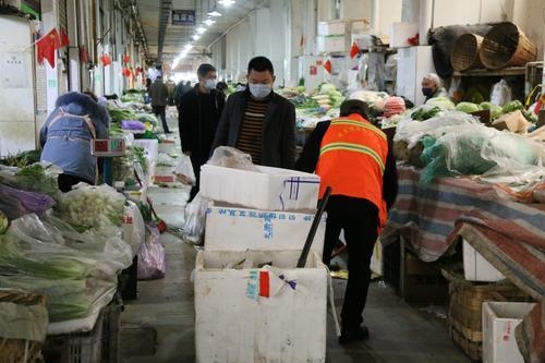 14日上午8时以前,龚学东再次深入摊位逐一检查,确保市场全体商户除了对各自店面的扫除、保洁和消毒外,还对诸如公厕、水池、垃圾桶、停车场等公共区域以及家禽水产售卖点、下水道、上下楼梯等重点部位,进行了“零死角”全覆盖的卫生环境集中整治。