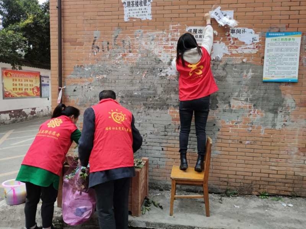崇德社区好人叶元蓉一早就起来与社区志愿者们汇合,他们56人分为四个小组深入小区院坝、楼栋,一边清扫死角垃圾,一边宣传动员社区居民积极参加“周末大扫除”行动,随后上千户家庭纷纷响应主动加入,全力开展家庭卫生大清洁、社区楼栋大扫除、社区绿地花园大整治行动。几净窗明、鸟语花香,一幅环境优美、风尚新美、家庭和美、生活富美的崇德画卷正呈现在眼前。