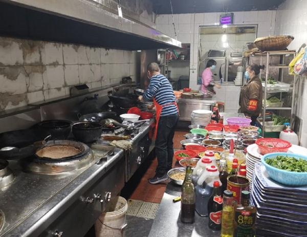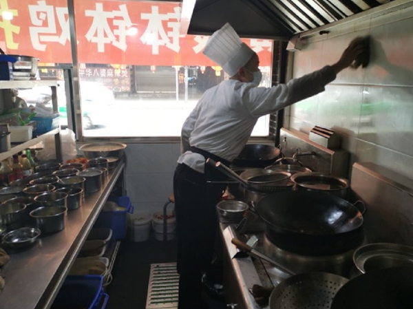 在两位“红袖标”的帮助下,陈老板用了一个上午的时间把整个店面“换新”了一遍:大堂里的木质桌椅一尘不染、后厨的锅碗瓢盆整齐排列、就连抽油烟机都擦得锃亮,以免形成藏污纳垢的油腻死角。