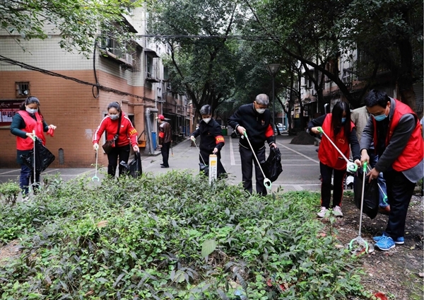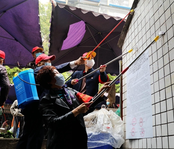 在龙马潭区龙祥社区,区级包保部门、镇街志愿者,组织社区干部、党员代表、居民代表实施“三级联动”,对社区无物管小区、便民交易点等区域进行全面卫生大扫除。