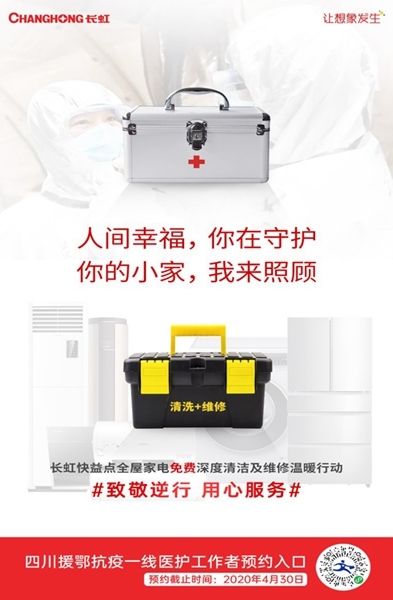 抗疫一线的医护工作者是最美“逆行者”,社会各界从各方面给予关心。在四川,免费火锅、免费景区层出不穷。此次长虹提出免费家电清洗服务,也是希望更好关心“逆行者”家人生活健康,带动更多企事业和社会组织参与。