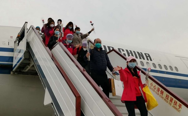 四川在线消息(记者 杨丹)3月17日17:30分左右,四川省第六批援湖北医疗队303人分别乘坐由武汉飞往成都的国航CA044和CA042航班相继抵达双流国际机场。返回后,医疗队将直接由机场前往仁寿县黑龙滩长岛天堂州际酒店进行隔离休整。