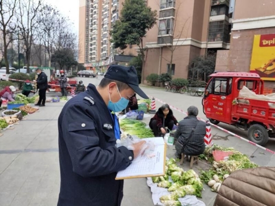 御城临时占道摊区位于新都区新都街道板桥社区,附近有旺府豪庭、北城1号、御城、邑品天都等8个小区,居民3.6万余人。“选择这块空地,充分考虑到减少市民聚集、能有效进行防护、服务更多居民及规范临时占道经营等多方面的因素。”该负责人介绍,约200多平米的临时占道摊区位于御城小区旁的一处人行道,经营时间为每天早8时至下午2时,摊主主要来自因疫情关闭的临时菜市和新都本地农户。