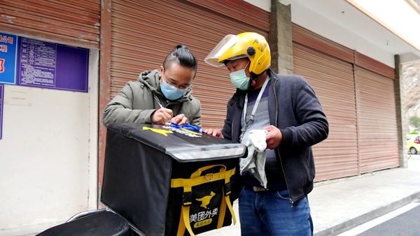 除了每单外卖上加封“食安标签”,汶川美团外卖平台要求所有配送人员送餐期间全程佩戴口罩,同时推出了多种措施来保障人员的健康跟食品安全,比如,每天至少进行两次针对配送人员的体温测量,不低于3次对人员和餐箱、车辆等进行消毒。