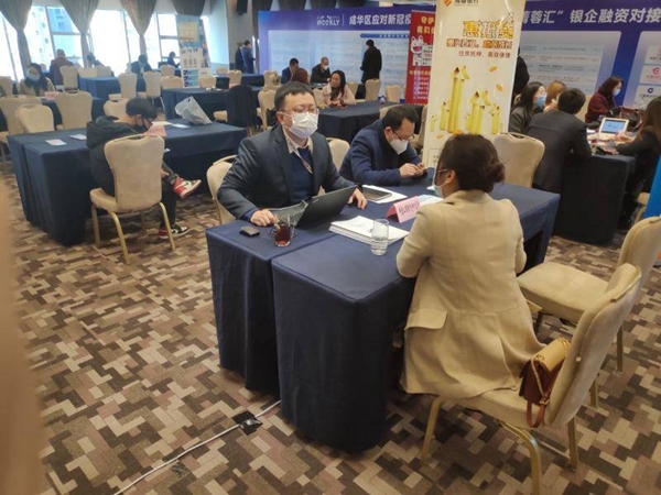对接活动现场,成华区新经济和科技局现场解读《新冠肺炎疫情期间企业扶持政策汇编》,工行沙河支行、招行成华支行、成都银行成华支行等银行机构和蜂巢金服、沛坤投资、盈创德弘创投、给你金服等投融资机构、贷款信息比价平台一起重点介绍了针对疫情推出的特色金融产品,分享了如何取得第一笔贷款、如何持续拿到贷款、疫情下如何取得基金投资等经验。16家银行分支机构共向企业推出壮大贷、抗疫贷等42款金融新产品。线上同步开通了中国电信高清网络视频会议系统,为银行和未到场企业开辟独立网上“房间”,让企业隔着屏幕就可向银行咨询产品,获得实时答疑服务和金融机构的融资建议。