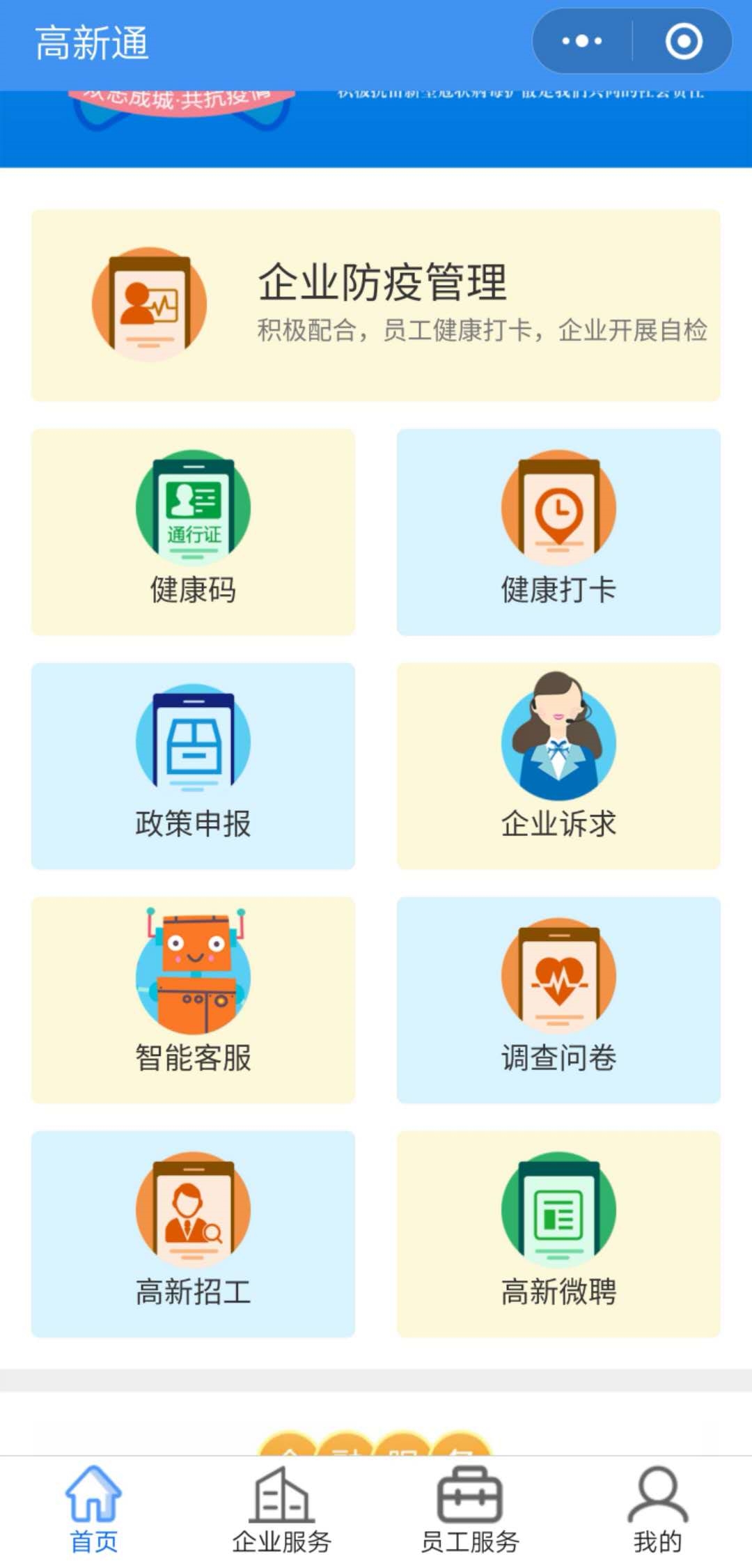 打开“高新通”小程序,记者注意到,该平台设有企业防疫管理、金融服务、防疫政策、企业诉求、定制公交、技术服务等板块,可帮助企业实时掌握企业招聘信息、个人健康防护知识等信息,其中企业招工栏目拓展了企业招聘信息发布渠道及求职者找工作的可信渠道。