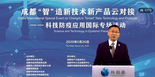 当天,由成都市科技局联合市经信局、市政府外办、市博览局、市科协、市新经济委主办的成都“智”造新技术新产品云对接——科技防疫应用国际专场活动,通过线上中英双语同步直播形式举行。重点推介了17项成都造科技防疫新产品,同时发布218项防疫产品清单。