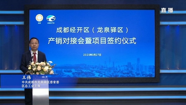 3月27日,由成都经开区管委会、龙泉驿区人民政府主办,成都经开区(龙泉驿区)经济和信息化局承办的成都经开区(龙泉驿区)产销对接会暨项目签约仪式网络直播活动成功举行。