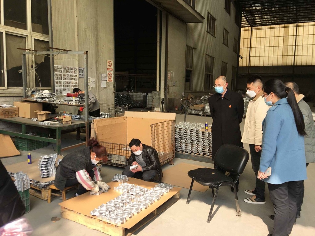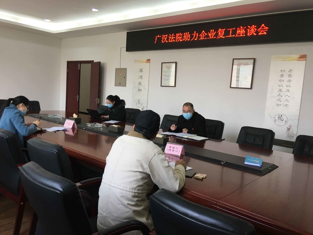 2月25日,在复工复产前,广汉法院破产审判团队来到华威公司检查防疫物资配备是否到位,生产、生活、办公区域是否全面进行环境卫生清理消毒,了解员工测温登记、生产车间人员密度等情况,督促华威公司在复产复工同时,做好疫情防控。