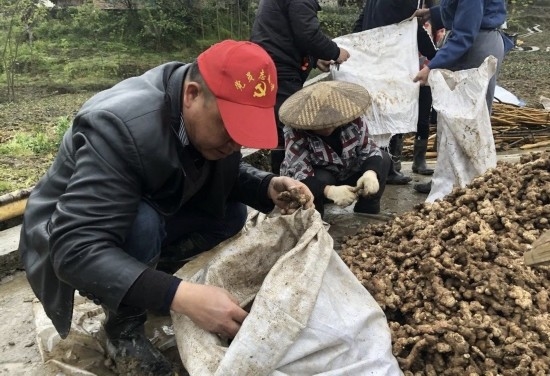 花滩镇大理村第一书记刘伟说,“村上在芦山采购脱毒姜种2万斤,主要套种在大理村一期茶园中,让大理村村民在家门口就有经济收入,这次也解决了群众一千余人次务工问题,预计在年底收入成品姜大概有20万斤,按照与供货商签订的回购协议,预计保底收入30余万。”