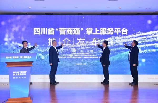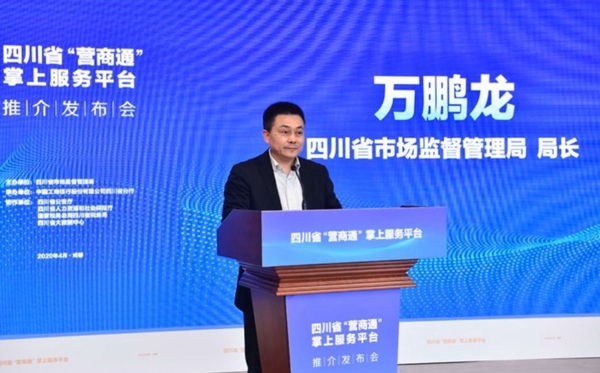 4月10日,随着四川省市场监管局局长、党组书记万鹏龙,中国工商银行四川省分行行长韩松,四川省大数据中心副主任赵启斌,中国人民银行成都分行副行长廖凤华共同按下启动仪,“营商通”掌上服务平台正式发布。