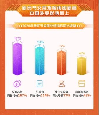 全国情况看,新贸节开场仅12小时,全站累计实收GMV同比增长91%。首单是埃塞俄比亚的商家给南通盛亭化工科技有限公司下的订单。借助国际站物流服务,订单跨越半个地球,仅用时33小时41分20秒。