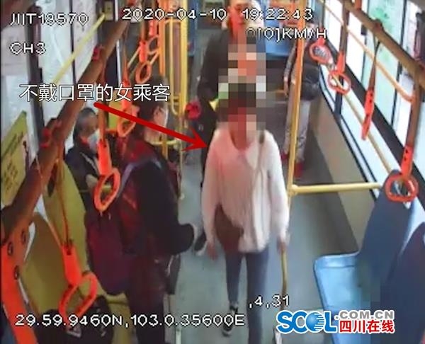 根据3路公交车车载监控视频显示,4月10日晚19时,一男一女抱着孩子在市区联通广场站准备上车。刚上车,司机王师傅就发现这3名乘客(包括小孩)没有戴口罩,随即提醒他们戴好口罩后再上车,但女乘客以口罩在包里等为由拒不佩戴,执意上车。