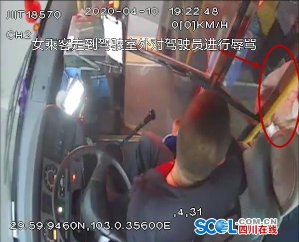 乘客冉女士回忆说,当时,在司机和车上乘客的劝说下,抱小孩的男乘客先下了车,但女乘客仍不听劝阻,在驾驶室旁对司机进行辱骂,情绪激动。