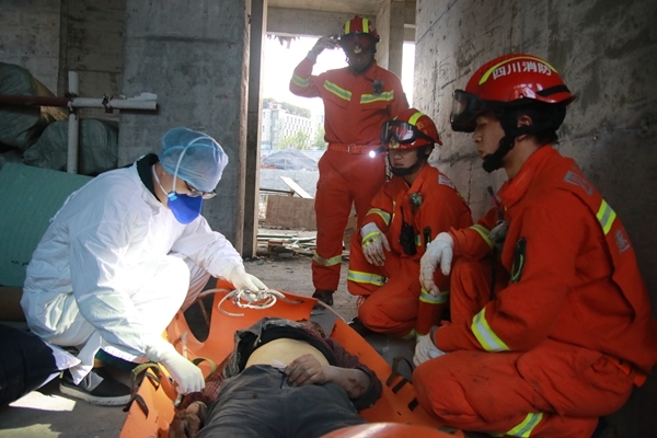四川在线消息(邹士可 记者 陈松)4月13日18时许,遂宁市高新区玫瑰大道一建筑工地发生垮塌事故,事故造成1名人员被砸伤,1人被埋压,情况十分危急。18时19分,遂宁市消防救援支队指挥中心接到报警后,迅速调派物流港政府专职消防队、花溪路消防救援站2辆抢险救援车、14名消防指战员赶赴现场进行救援。支队全勤指挥部遂行出动,现场指挥救援工作。