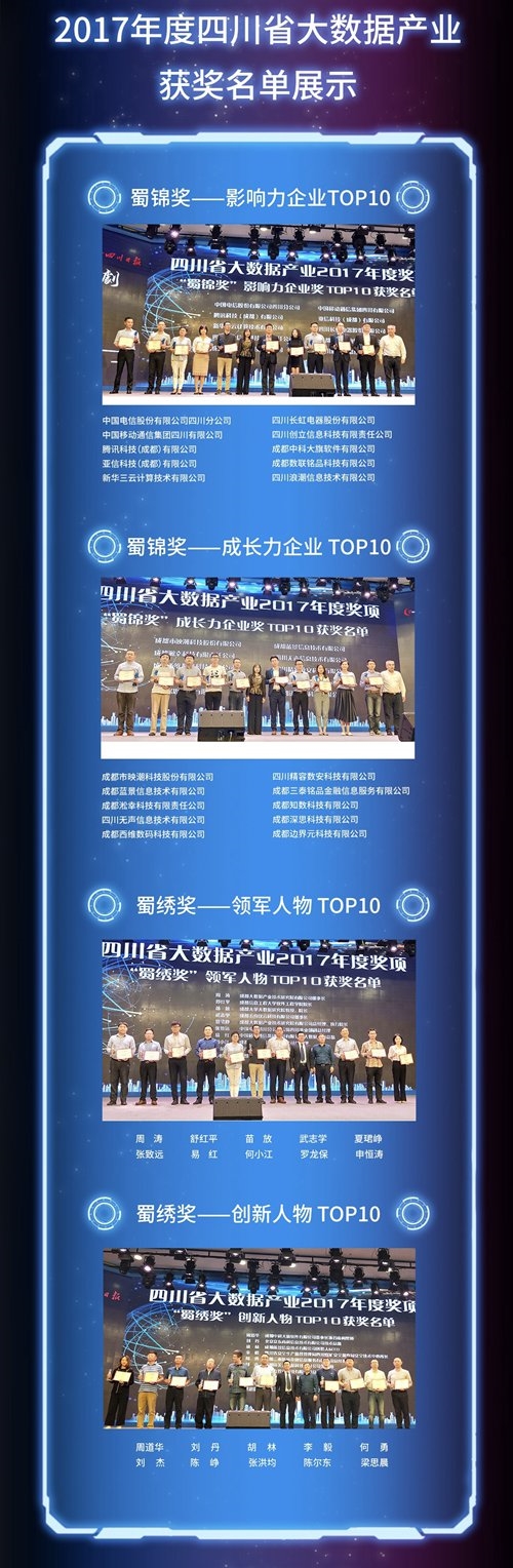 “今年是这一评优活动举办的第4年,总体评选程序与往年差不多。”朱小军回忆,“过去3年评选中涌现出了一大批大数据产业优秀企业,如成都数之联科技有限公司、成都映潮科技股份有限公司等。”