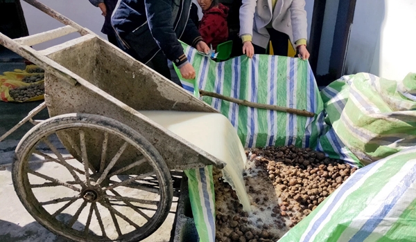 四川在线消息(廖启江 记者 文莎)3月25日,若笔村农民夜校开了一堂新课,组织村民现场观摩农业专家对种芋进行浸种。
