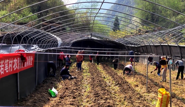 若笔村曾经是一个贫困村,全村海拔在1400米以上,山高坡陡,土地贫瘠。全村187户592人,耕地仅有954亩。2018年通过各级政府的帮扶,若笔村全面完成脱贫目标,现有30余户脱贫户。但是,若笔村里大多数农户种植玉米,成本高、收益低。1亩地玉米,全部卖出去的话,收入也只有1000元到1200元左右。要想巩固脱贫成果,核心是产业发展。祝申跃说,为了帮助村民发展产业,他们在认真分析若笔村海拔、气候、土壤等因素后,提出了发展魔芋产业的建议。