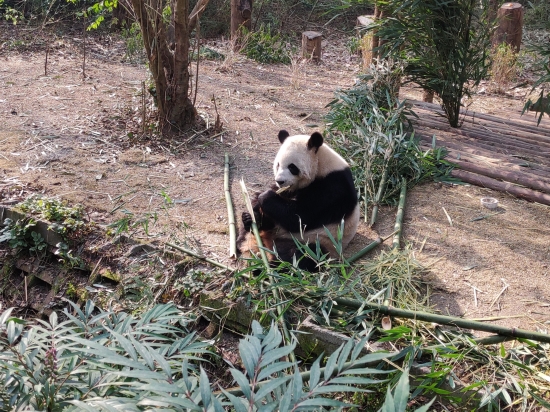 在成都国际旅游度假区,憨态可掬的大熊猫,正品味着竹子的美味,享受这难得的悠然时光。