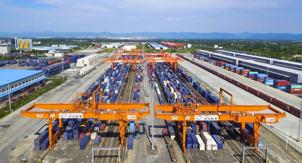 据介绍,今年年初以来,成都海关以中欧班列运费机制改革为契机,加强系统性、配套性改革,为企业量身定制更加便捷高效的贸易便利化举措,中欧班列(成都)不仅持续保持安全稳定运行,各项业务指标逆势增长,班列开行质量实现大幅提升。今年一季度,中欧班列(成都)开行量同比增长92.7%,综合重箱率93.7%,保(B)监管货值居全国第二,跨境电商业务增长21倍。新冠肺炎疫情期间,肉类进口冷链班列以及纸浆、矿石等大宗商品专列高效开行,有力保障了中欧产业链、供应链畅通。(青白江区委宣传部供图)