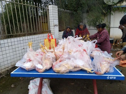 12社贫困户朱大姐和16社贫困户詹大爷家原本十分抢手的土鸡,这段时间也成了滞销货。蒋为民得知后,当即和罗斌入户核实、拍摄照片,自愿当起土鸡以及土鸡蛋的“代言人”。一周不到,滞销土鸡及鸡蛋就销售一空,为两户群众各增加收入1000多元。