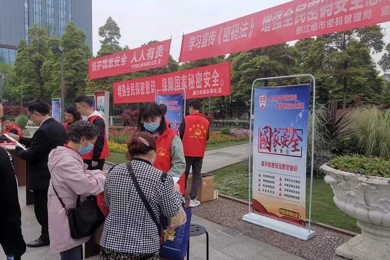宣传活动中,灌口街道悬挂宣传横幅,发放宣传资料,摆放《国家安全法》,《反间谍法》展览刊板,开展解答法律咨询等,工作人员现场为群众讲解国家安全法、反间谍法、消防、防邪、禁毒等法律法规,让群众了解维护国家安全的重要性。同时还联合都江堰市密码管理局,向群众宣传保守国家秘密的相关知识,让广大群众了解全体公民都有保守国家秘密的义务。