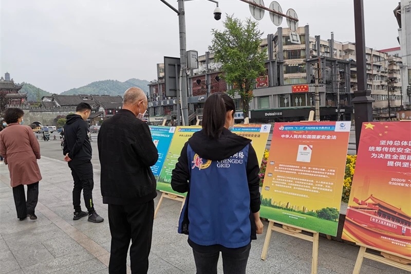 四川在线消息(记者 张雪婵)2020年4月15日,是我国第五个“全民国家安全教育日”,主题为“坚持总体国家安全观,统筹传统安全和非传统安全,为决胜全面建成小康社会提供坚强保障”。4月15日上午,都江堰市灌口街道组织南桥派出所、街道社区治理办、街道应急办、街道司法所、玉带桥社区在水文化广场开展第五个“全民国家安全教育日”活动。