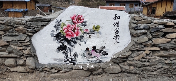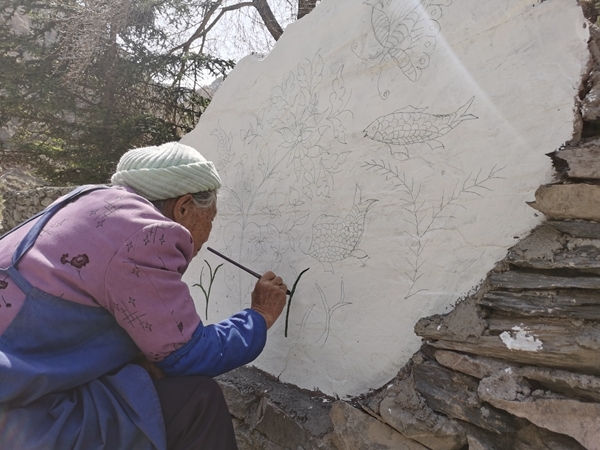 “围墙砌好后,绘上吉祥八宝图,才能体现出我们民族特色。”纳玛大叔说。