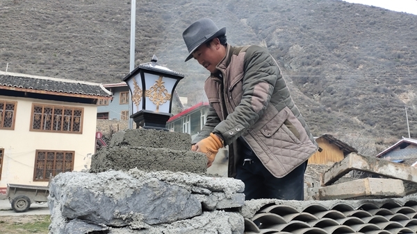 四川在线消息(钟林秀 记者 徐登林 文/图)“坐脊着檐、正门齐墙、拆违洁面、栽花种草。”4月23日,在阿坝州松潘县燕云乡色贡村,藏族老乡纳玛大叔在砌庭院围墙时反复念叨这句话。“有了统一标准,我们才晓得怎样做出来漂亮好看。”他说。