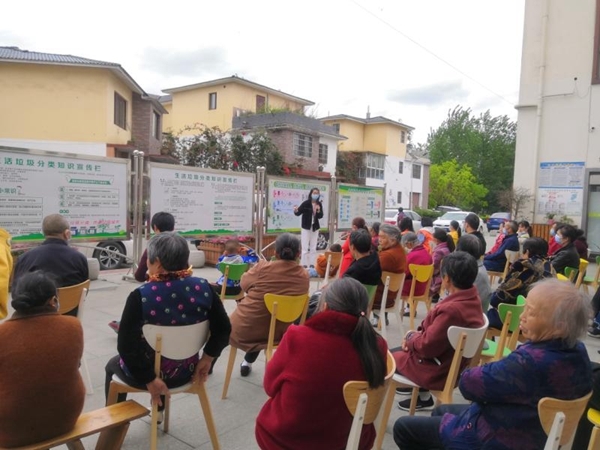 活动现场,一名党员志愿者向社区居民介绍道,据统计每人日均产生生活垃圾约1.088千克,新津县全年生活垃圾产量可逾15万吨。开展垃圾分类有利于促进变废为宝、提高资源循环、减少垃圾产量,是一件利国利民的好事,也是党和国家高度重视的一项工作。当前,成都市生活垃圾分类正在立法阶段,成都很快也将进入生活垃圾“强制时代”,学会垃圾分类十分重要。同时,通过展板讲解,结合每位居民手上的垃圾分类指南,志愿者详细介绍了垃圾分类具体内容,怎么分类才是正确进行了具体举例。