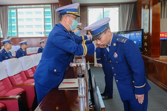 参照主会场仪式议程,绵阳市消防救援支队同步组织6名新消防员签订了《消防员接受协议书》。绵阳市消防救援支队政治委员高明月和副支队长兼灭火救援指挥部部长吕小荣为6名新消防员佩戴消防救援衔。