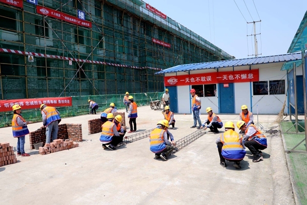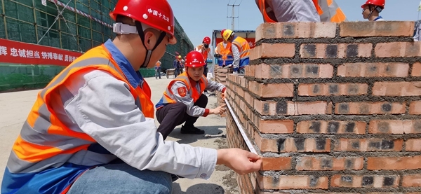 “预备,开始!”随着裁判一声令下,在项目部现场的18名工人分成砌砖和绑钢筋比赛小组,迅速冲到各自的比赛区域,投入紧张的比拼中。身手敏捷地把铁丝绕过钢筋,一丝不苟地测量、排砖、砌角......随着直播主持人、项目经理李世勇的直播镜头,媒体记者详细了解了比赛的规则,观看了一场别开生面的绑钢筋、砌砖技能竞赛。比赛期间,李世勇详细介绍了项目建设意义、推进情况,他指出,该项目为市政有轨电车项目,全长约20.3公里,共设站28座。项目建成后,将成为有效连通都江堰、青城山世界文化遗产地的旅游客运专线,连接离堆公园片区、滨江新区、中兴片区、青城山片区等区域,与成灌铁路共同构建都江堰市的公共交通网络体系。项目坚持科学防控疫情,文明有序复工,在3月初实现全面复工的基础上,目前正全力拼抢进度,争取把因疫情耽误的工期抢回来。他表示,项目部将充分发扬“一天也不耽误、一天也不懈怠”朴实厚重的中冶精神,全力做好项目全生命周期管控,为都江堰打造国际化生态旅游名城贡献“西部铁军”力量。