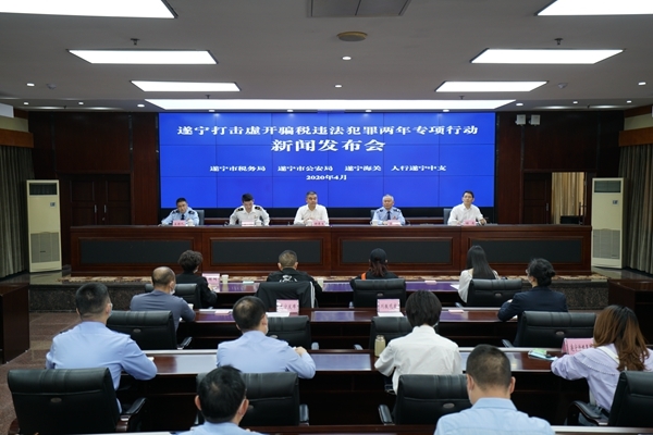 遂宁打击虚开骗税两年专项行动结束时间将延迟到2020年底,遂宁市税务、公安、海关、人行等四部门将进一步加大案件查处力度,严厉打击没有实际经营业务只为虚开发票的“假企业”、没有实际出口只为骗取退税的“假出口”、具备条件只为骗取疫情防控税费减免等优惠政策的“假申报”行为。