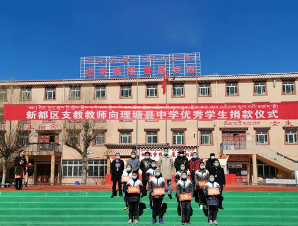 四川在线消息(记者 陈昊)“下面请接受援藏教师捐赠的同学上台领奖!”4月27日,理塘县中学向该校8位优秀学生颁发资助奖金,该笔奖金由成都市新都区援藏教师徐贤忠捐赠。