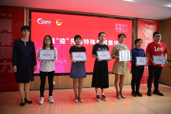 四川在线消息(记者 钟帆)4月30日,“五四”青年节即将来临,由成华区群团枢纽工程指挥部主办,团区委、区文明办、区民政局承办的“青春聚力·青耀成华”五四系列活动之战“疫”先锋公益展暨优秀青年志愿者(集体)颁奖仪式在成华区群团服务中心举行,进一步弘扬广大青年志愿者在防疫阻击战中表现出的无私奉献精神。颁奖仪式上,参加活动的青年代表参观了战“疫”先锋公益展,观看了抗疫主题视频,获得战“疫”先锋优秀青年志愿者、优秀青年志愿者集体、优秀社会组织、特殊贡献集体和个人的代表还分享了抗疫经历和心路历程。