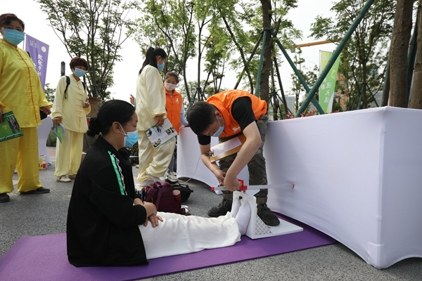 活动现场形式多样,既有武术、健身气功等传统体育项目展示,也有跆拳道、射箭等大运会正式比赛项目体验;还设有亲子体育项目互动,个人竞技挑战项目打卡,现场每个人都可根据自己的爱好选择不同的项目进行参与。张女士是一名环卫工人,平时很少参与体育运动,这次活动现场她体验了一下气排球项目,“这么多年来我们都受到中国女排精神的鼓舞,但很少有机会打排球,气排球还比较简单,打起来手也不痛,觉得安逸,我们非常喜欢。”此外,现场还设有大运会知识问答,扫码即可参与,通过答题积分换取相应奖品,吸引了不少市民参与。
