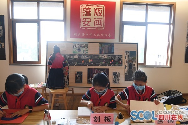 四川在线消息(郭安平 记者 蒲南溪)4月30日,南充市蓬安县城东路小学版画课现场,小学生正在制作版画。