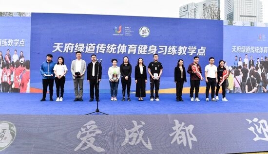 同时,现场还发布了“天府绿道传统体育健身习练教学点”,并颁发首批天府绿道健身指导员聘书。这6个天府绿道传统体育健身习练教学点分别是武侯区天府芙蓉园、高新区桂溪生态公园东区、青羊区金沙滨河公园、金牛区金泉体育运动公园、成华区麻石烟云广场、锦江区东湖公园。从5月中旬开始每周六上午9:30-11:00进行教学。广大职工群众可通过电话83221897,联系成都市武术运动协会的习老师免费学习。
